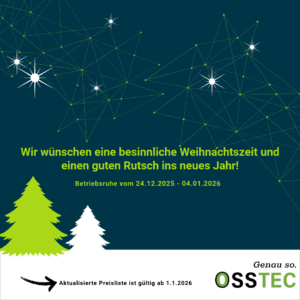 Das Jahr 2025 neigt sich dem Ende zu, und wir möchten uns von Herzen für die vertrauensvolle und erfolgreiche Zusammenarbeit bedanken. Es war eine spannende und bereichernde Zeit, die wir mit Ihnen verbringen durften. Betriebsferien: Vom 24. Dezember 2025 bis 4. Januar 2026 bleiben unsere Türen geschlossen. In dieser Zeit